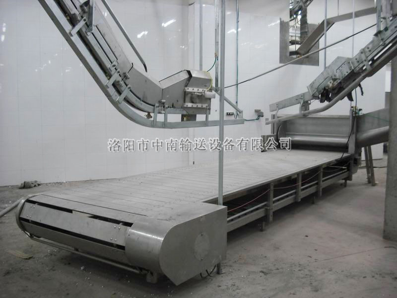 15516371888平板輸送機:該機用于麻電后的牲豬輸送, 上掛至放血線(xiàn)的配套設備。該機主要由機架、電機、減速機、板鏈、鏈輪,拖輥等部件構成,具有結構簡(jiǎn)單、運轉平穩,維修方便等優(yōu)點(diǎn)。是大、中型屠宰加工廠(chǎng)不可缺少的設備。